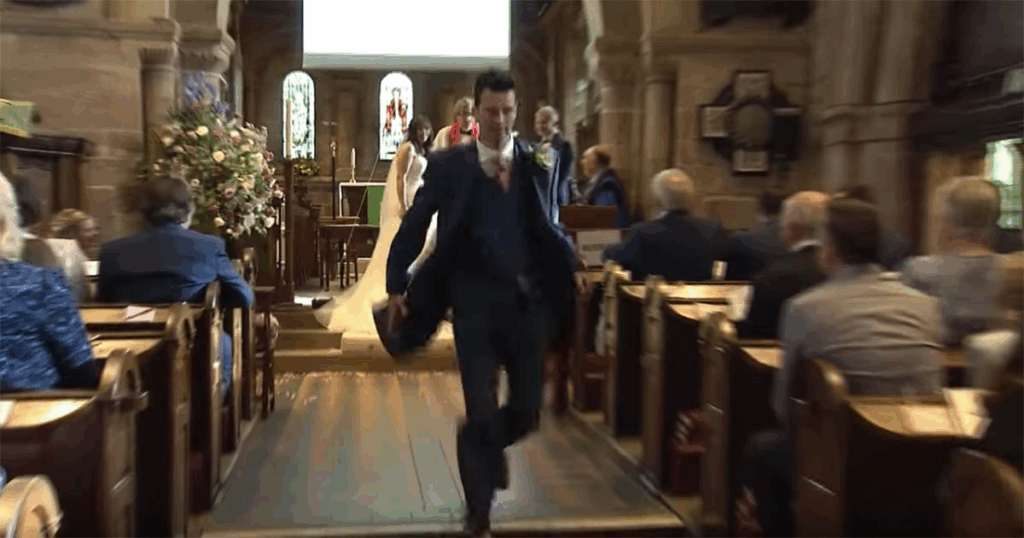 Plotseling zette Stuart het op een lopen! Hij stormde het middenpad af, de kerk uit, terwijl de gasten elkaar vol ongeloof aankeken. Sommigen dachten dat ze getuige waren van een complete bruiloft die op het laatste moment werd afgeblazen. Maar wat er daarna gebeurde, zou iedereen volledig verrassen.