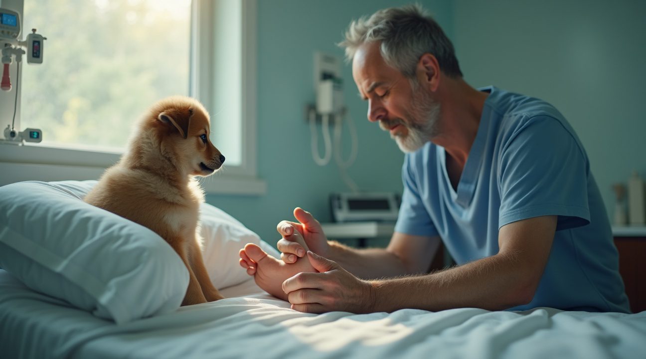 De artsen ontdekten al snel de ernst van de situatie. David had twee geblokkeerde slagaders die zijn bloedsomloop ernstig hadden beperkt. Zonder de alarmerende actie van zijn trouwe viervoeter had deze medische noodtoestand onopgemerkt kunnen blijven. De gevoelloosheid was een direct gevolg van de slechte doorbloeding, maar David had dit gevaarlijke symptoom zelf nooit gerealiseerd tijdens zijn dagelijkse activiteiten.