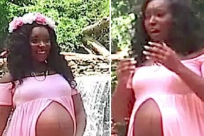 Deze zwangere vrouw poseerde voor de camera, maar realiseert zich na omdraaien…