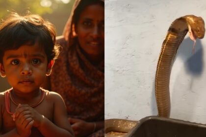 Een dappere peuter uit India overleeft een cobra-aanval door de slang dood…