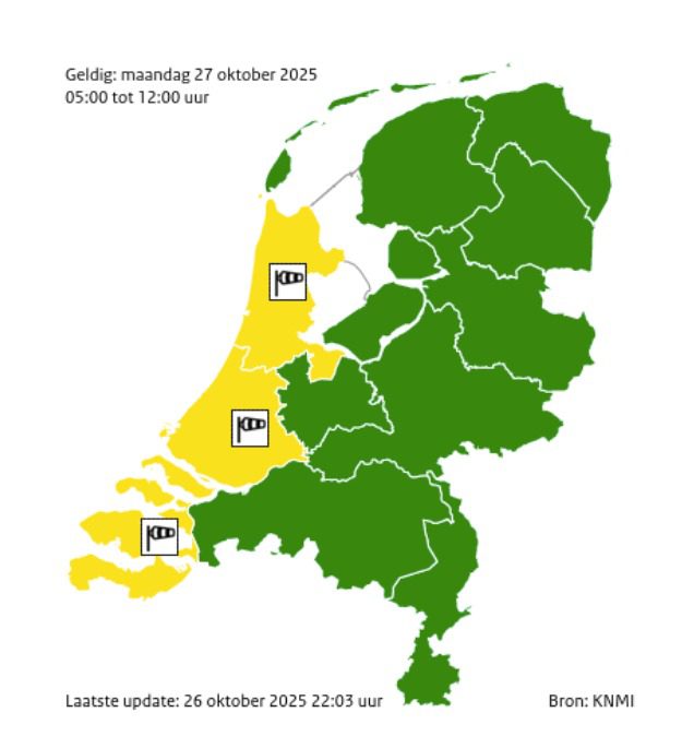 De code geel waarschuwing is vanaf 7.00 uur maandagochtend van kracht en blijft naar verwachting tot 12.00 uur bestaan in de zwaarst getroffen provincies Noord-Holland, Zuid-Holland en Zeeland. In deze regio’s kunnen bewoners en weggebruikers rekening houden met de meest extreme windstoten, waarbij vooral de kustgebieden de volle kracht van de storm te verduren krijgen.