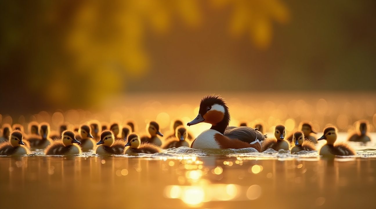 Volgens biologen is het hoogst onwaarschijnlijk dat deze geweldige moedereend alle eitjes zelf heeft uitgebroed. In plaats daarvan fungeerde zij als de matriarch van het hele meer die voor alle kuikentjes zorgde terwijl de volwassen eenden hun pluimen ruiden. Dit bijzondere opvoedingsinstinct toont aan hoe sterk het moederlijke gevoel kan zijn in het dierenrijk.