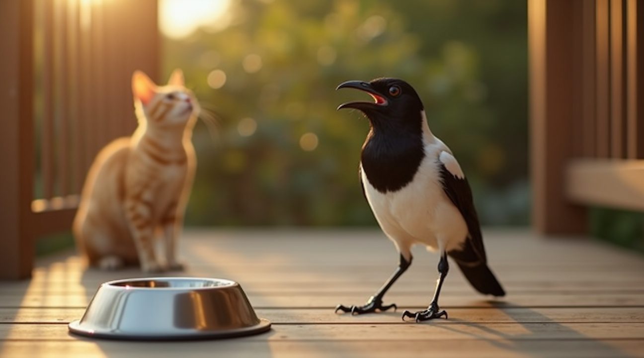 De slimme vogel had wekenlang de dagelijkse routine bestudeerd en perfect door hoe de spraakvaardige dieren hun voedsel bemachtigden. Net zoals sommige papegaaien menselijke geluiden kunnen nabootsen, had deze kraai het kattenrepertoire onder de knie gekregen. Sterker nog, hij ging zelfs zo ver dat hij boze kattengeluiden maakte om de echte katten weg te jagen en het voerbakje voor zichzelf te claimen.