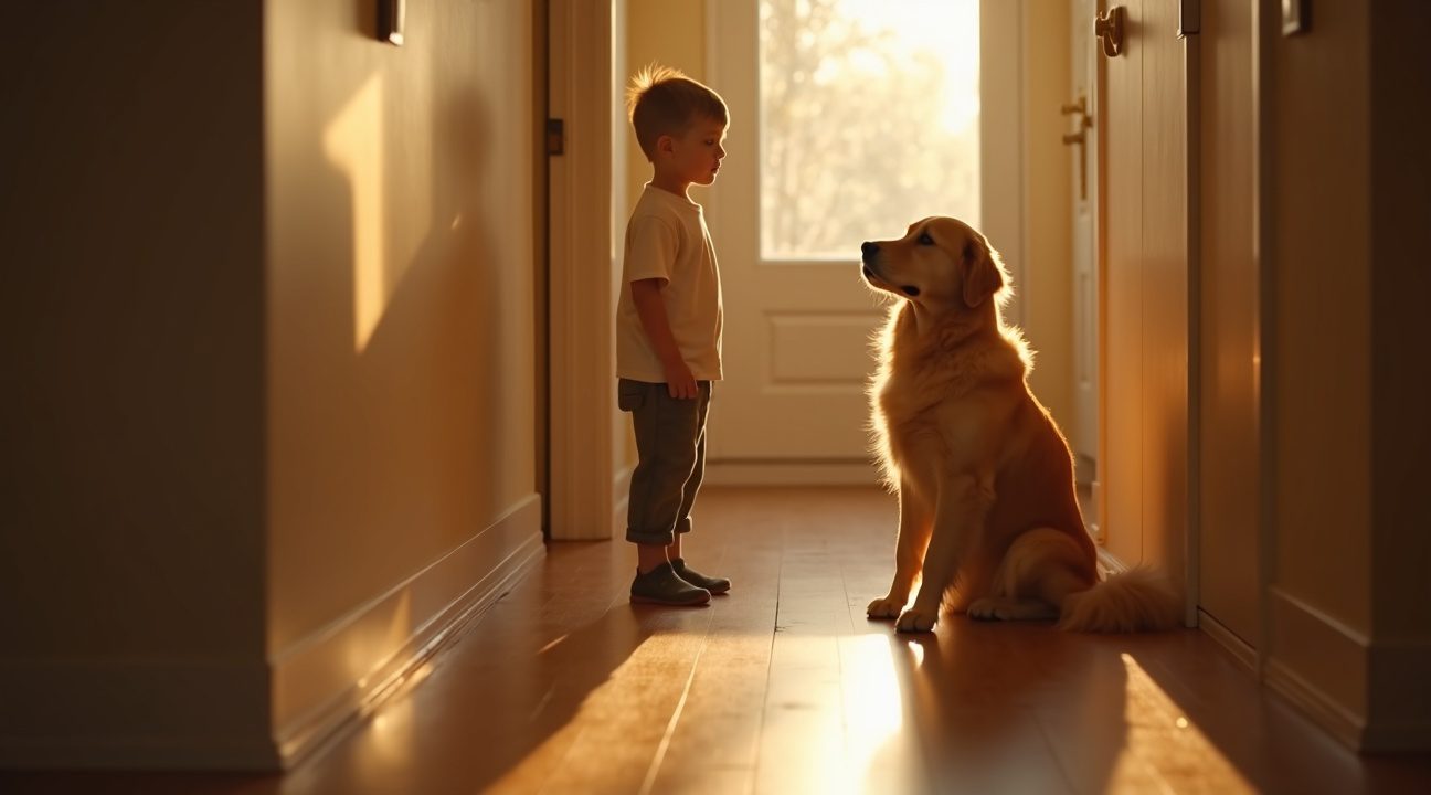 Wat deze foto zo bijzonder maakt, is de manier waarop beide vriendjes precies dezelfde houding aannemen. Dash staat rustig naast zijn kleine baasje, alsof hij perfect begrijpt wat er aan de hand is. De hond laat zien dat echte vriendschap geen woorden nodig heeft, alleen aanwezigheid. Deze spontane geste van solidariteit bewijst maar weer eens waarom honden de beste vrienden van kinderen zijn.