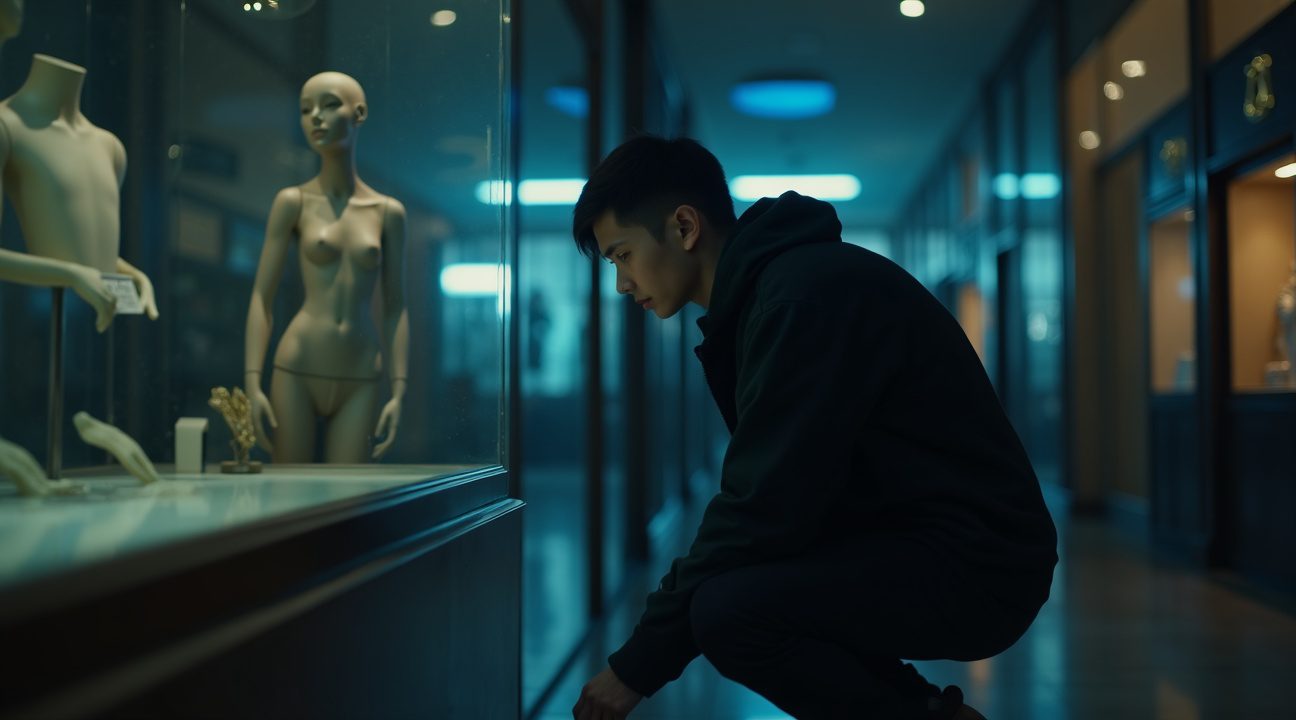Het duurt niet lang voordat hij uit zijn roerloze positie tussen de mannequins stapt en zijn ware bedoelingen toont. Met chirurgische precisie beweegt hij zich door de donkere gangen naar zijn eigenlijke doel: een juweliers kraam vol kostbare items die hij al uren vanuit zijn etalage positie had bestudeerd. De politie bevestigde later dat zijn planning minutieus was voorbereid en dat hij precies wist waar de waardevolste stukken lagen.