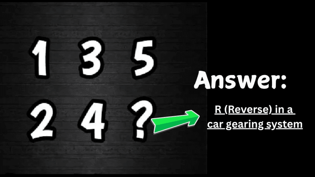 Het ontbrekende getal is niet 6, maar de letter R die staat voor achteruit in een autoversnellingssysteem. De getallen 1, 3, 5 en 2, 4 verwijzen naar de versnellingen in een handgeschakelde auto, waarbij het vraagteken de achteruitversnelling voorstelt. Net zoals puzzelstukjes soms op onverwachte plekken thuishoren, zit de sleutel van deze breinbreker in je dagelijkse ervaring achter het stuur. Deze verrassende wending maakt de puzzel zo listig en verklaart waarom slechts één procent van de mensen het juiste antwoord vindt binnen zeven seconden