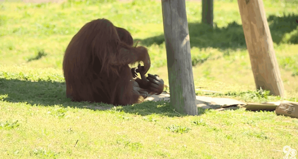 Deze orang-oetan mama uit Metro Richmond Zoo was helemaal de weg kwijt toen het op borstvoeding geven aankwam – haar eerste kleintje moest zelfs met de hand grootgebracht worden, omdat ze het gewoon niet snapte. Maar toen haar tweede baby werd geboren, bedachten de verzorgers iets ongelooflijk bijzonders: ze vroegen een kersverse mensenmama om haar eigen zoontje borstvoeding te geven waar Zoe bij was, zodat ze kon leren door naar de demonstratie te kijken. En geloof het of niet, het werkte echt – geen 24 uur later zoogde Zoe voor het eerst haar eigen baby!