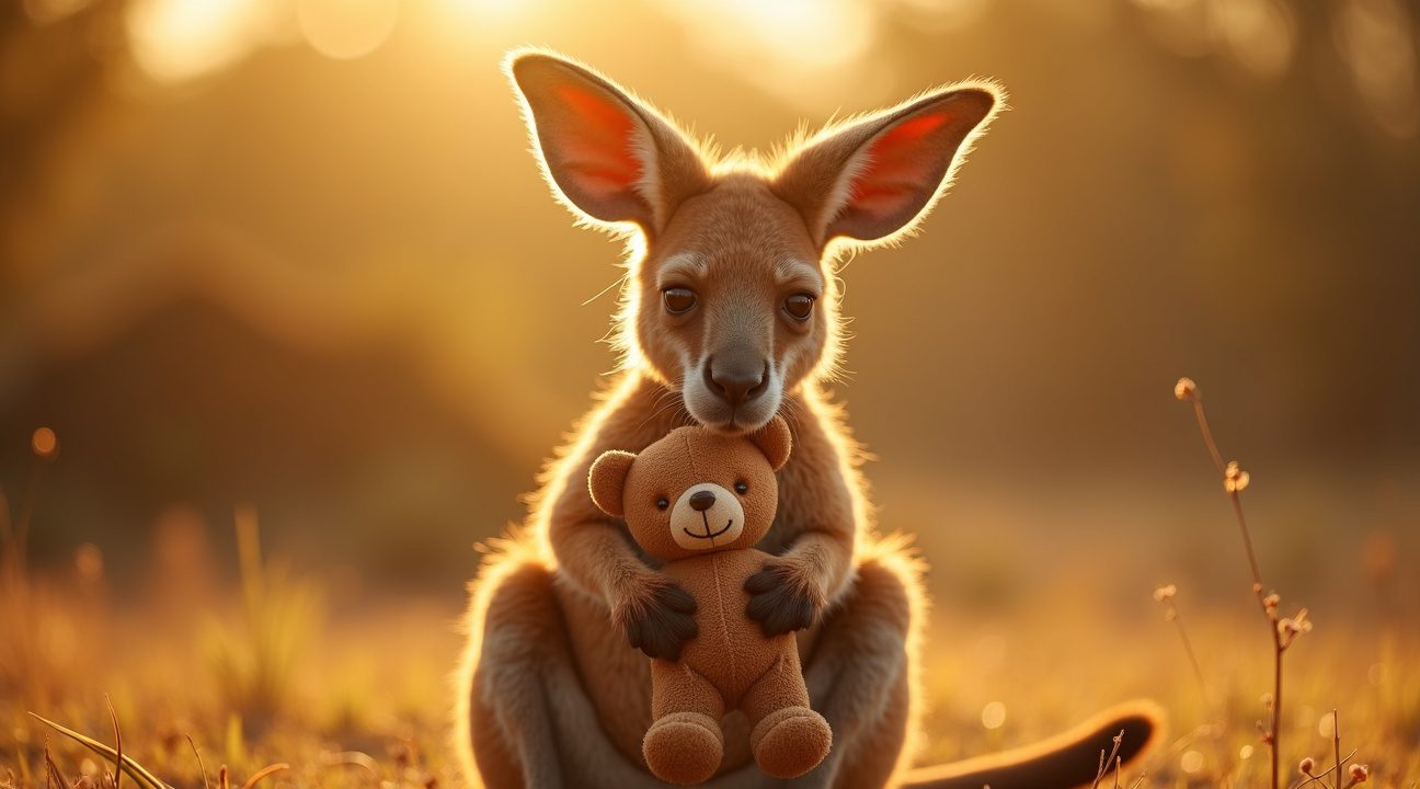 Beshara’s moeder, Gillian Abbott, is een erkende dierenverzorger die hem de foto stuurde van dit schattige tafereel. Net zoals andere reddingsverhalen bewijst Doodlebugs geschiedenis dat liefde en zorg wonderen kunnen verrichten. De 15 maanden oude kangoeroe werd ooit als zwak weesje van slechts 1,4 kilo gevonden, maar nu gedijt hij uitstekend dankzij de toewijding van zijn verzorgers. Vergelijkbaar gedrag bij jonge dieren laat zien dat de behoefte aan een knuffelmaatje universeel is in het dierenrijk. Doodlebug demonstreert dit perfect door zijn teddybeer overal mee naartoe te nemen en er bescherming bij te zoeken, precies zoals een mensenkind dat zou doen.