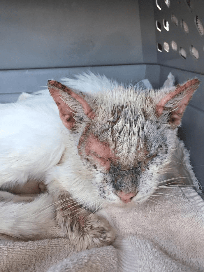 Carmen Weinberg, oprichter van Animal Friends Project Inc., aarzelde geen moment toen ze op 13 september de oproep kreeg om Cotton op te halen. Ze wist dat deze arme kat dringend professionele zorg nodig had en bracht hem onmiddellijk naar de dierenarts voor een grondige controle. Wat ze daar aantrof was nog schrijnender dan verwacht – Cotton leed aan een ernstige vorm van schurft die zijn huid had aangetast, hij was gevaarlijk uitgedroogd en vertoonde alle tekenen van bloedarmoede door ondervoeding.