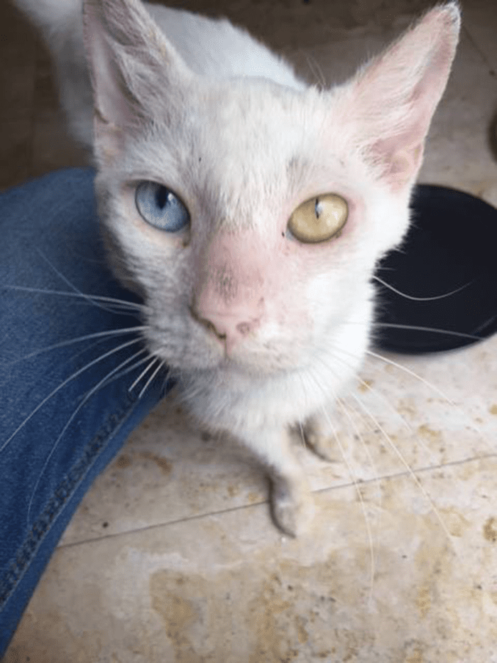 Wat een werkelijk prachtige transformatie! Cotton’s verhaal laat zien dat liefde en geduld soms de mooiste verrassingen teweegbrengen – van een zieke zwerfkat tot een geliefde huisgenoot met de meest betoverende heterochrome ogen die je je maar kunt voorstellen. We zijn zo blij dat Carmen besloot om hem zelf te adopteren en dat Animal Friends Project door blijft gaan met hun geweldige reddingswerk. Deel dit ontroerende verhaal met je vrienden als je net zo onder de indruk bent van Cotton’s ongelooflijke herstel!
