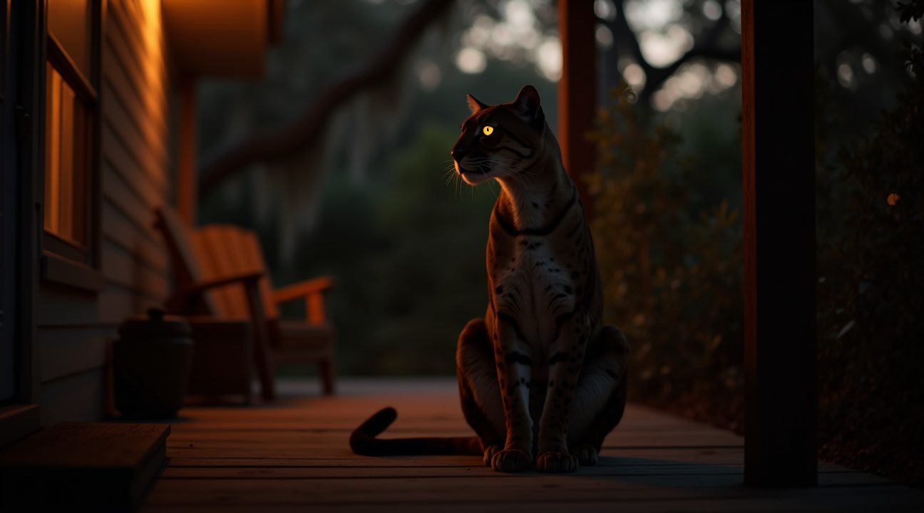 Daar zat geen huisdier, maar een volwassen Floridapanter – een van de meest bedreigde roofdieren van Noord-Amerika. Het imposante dier had zich comfortabel geïnstalleerd alsof de veranda zijn persoonlijke territorium was. Phil besefte onmiddellijk dat zijn zoontje zojuist een ontmoeting had gehad met een van de krachtigste jagers van Florida, zonder zich bewust te zijn van het potentiële gevaar.